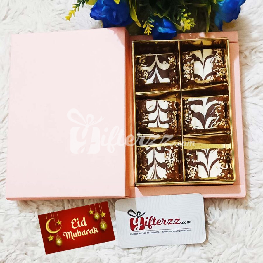 This luxurious 6pcs gift box contains Cashew Dates Sweets covered with sesame seeds. Wrapped with beautiful wrapping. You can send it as a corporate gift all over Pakistan.