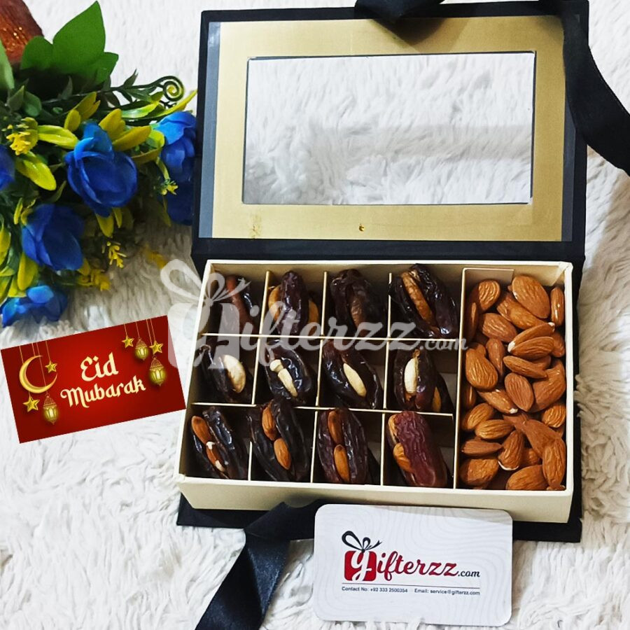 Celebrate festive with your loved ones by sending them Filled Dates with Almonds, filled dates, and almonds in prestigious presentations. A combination of wishful blessings beautifully wrapped with a ribbon bow.