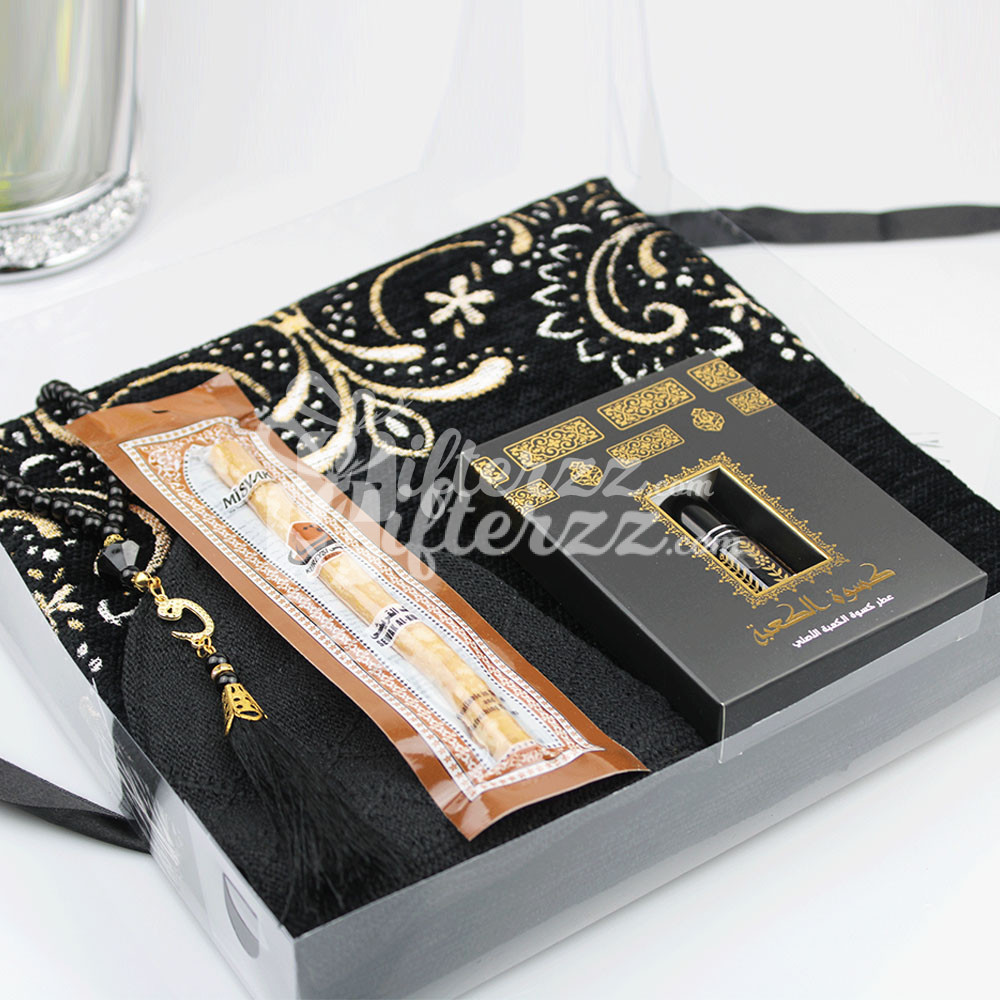 Ramadan Gift Hamper For Him: Celebrate Ramadan with your loved ones by sending them an original 6ml Ittar in a prestige presentation, along with a Topi, Tasbeeh, Jaynamaz, and Meswak. A combination of wishful blessings in the holy month of Ramadan wrapped with a ribbon bow.